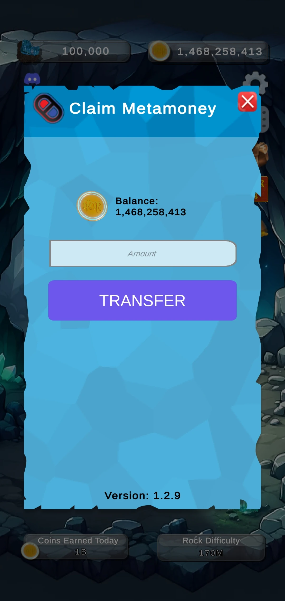 The game employs a difficulty adjustment system to manage the generation of Metamoney, targeting an average of 114 million coins per hour. This mechanism ensures a balanced economy by adjusting the yield per rock strike based on the total coins mined in a given period.